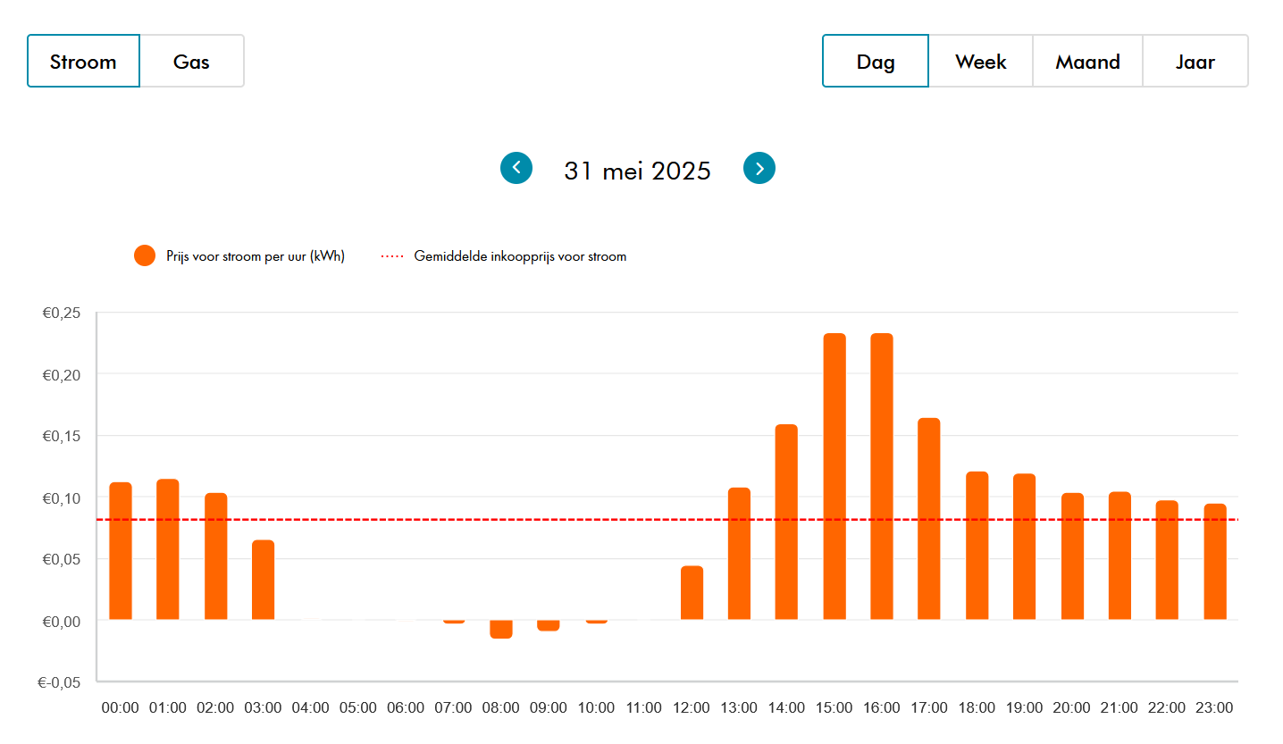 Benieuwd wat je op dit moment betaalt voor stroom of gas? Op deze pagina zie je de dynamische energieprijzen per uur (stroom) en per dag (gas). Zo weet je precies wanneer energie het voordeligst is en kun je je verbruik slim plannen.